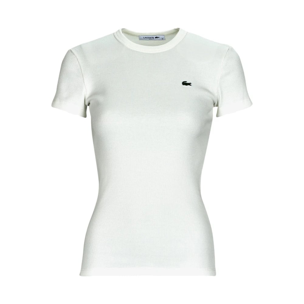 Lacoste, Toppar , Dam, L, Bomull, Slim Fit Ribbad Bomulls T-shirt
