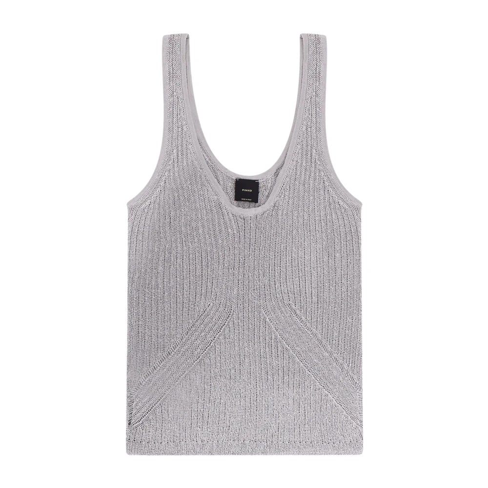 Pinko, Toppar , Dam, S, Grå U-ringad Ärmlös Ribbad T-shirt