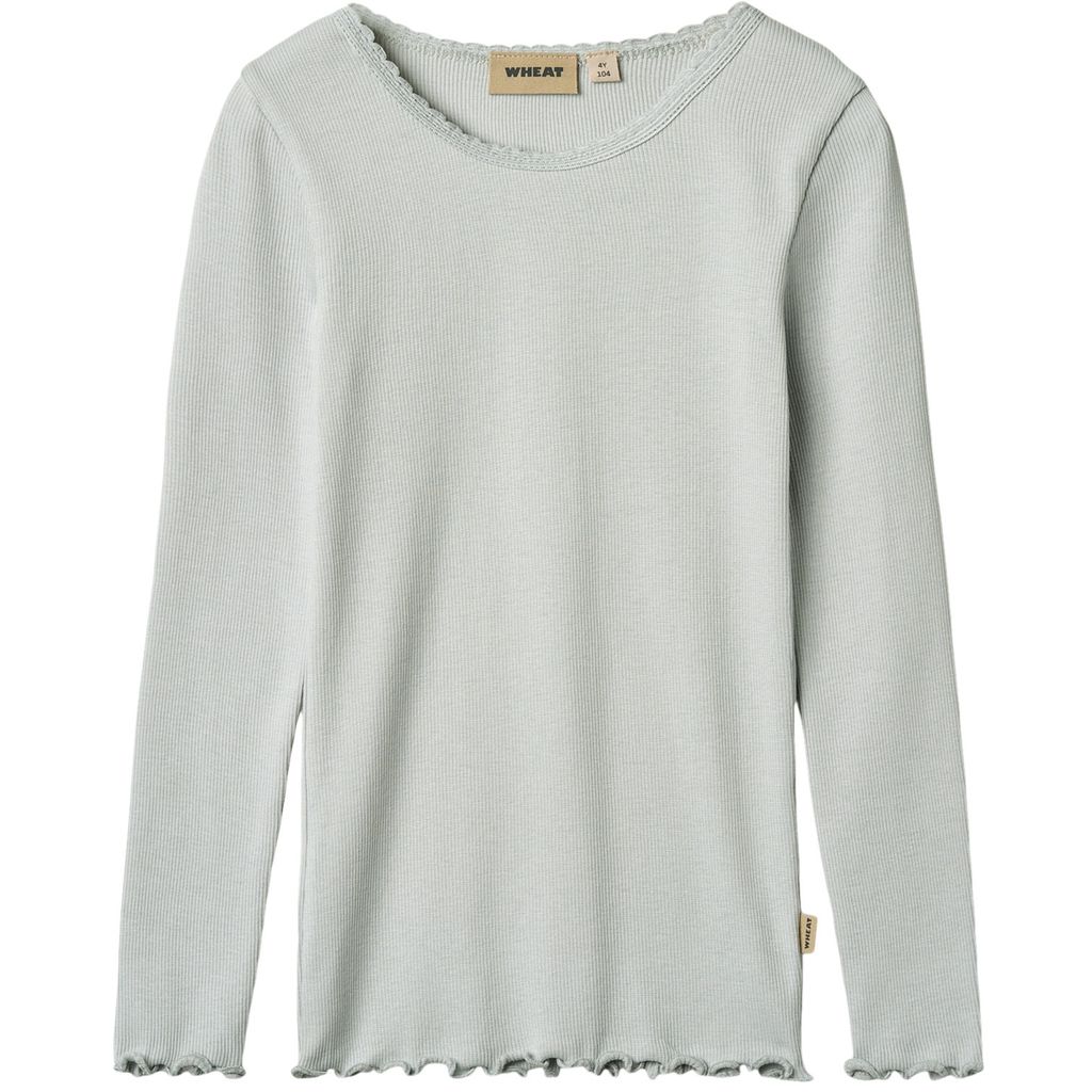 Wheat Irene Ribbad T-shirt Soft Blue 104cm Grön 104 cm kvinna