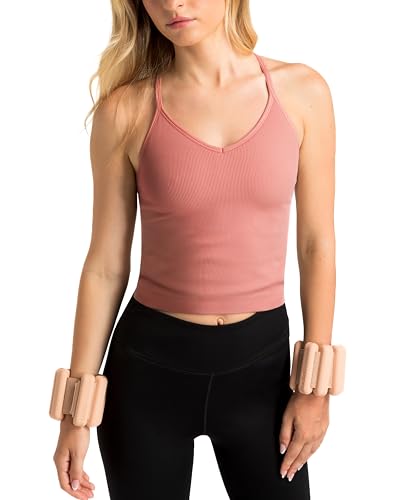 Aruki Sömlöst Kort Ribbat Linne För Kvinnor, Passande Träningslinne Med Racerback, Seamless Ribbstickad Mjuk Camisole För Yoga, Pilates, Löpning, Gym, Träning Och Avkoppling - Light Mahogany - Small