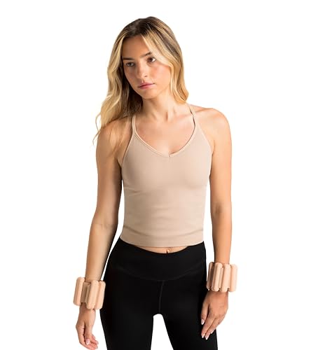 Aruki Sömlöst Kort Ribbat Linne För Kvinnor, Passande Träningslinne Med Racerback, Seamless Ribbstickad Mjuk Camisole För Yoga, Pilates, Löpning, Gym, Träning Och Avkoppling - Doeskin - Medium