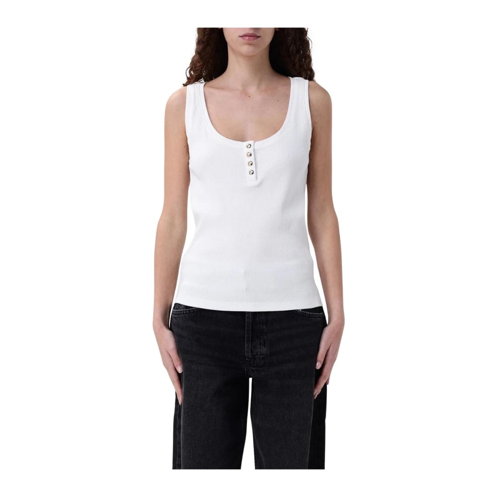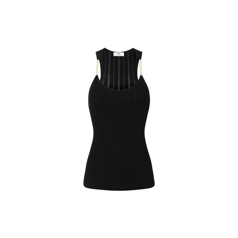Elisabetta Franchi, Toppar , Dam, M, Top i ribbat stickat tyg med hålmönsterdetaljer