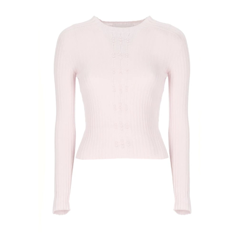 Vanisé, Stickade Tröjor , Dam, S, Kashmir, Rosa Kashmirtröja, Ribbat Mönster, Rund Halsringning