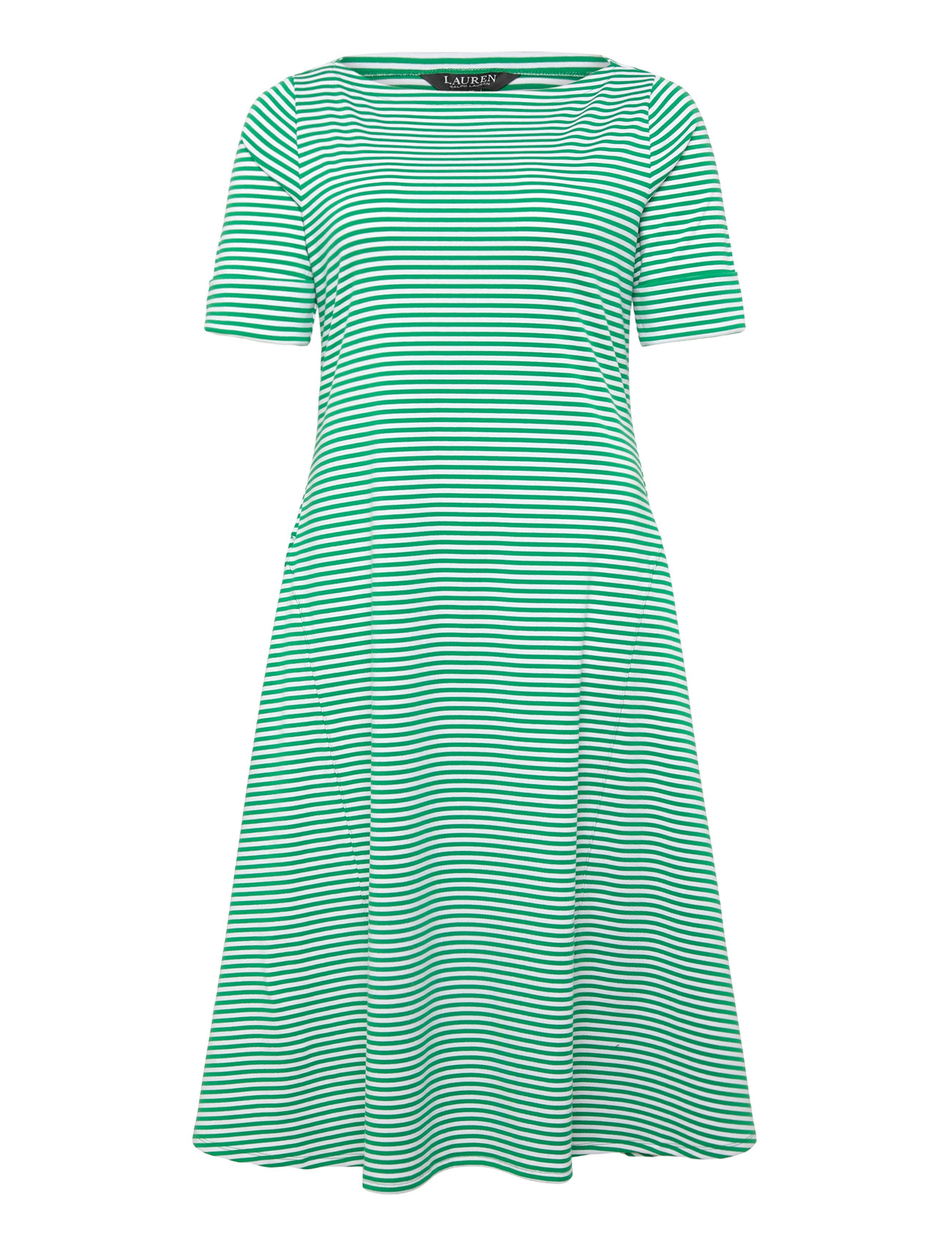 Lauren Women Striped Stretch Cotton Ribbed Midi Dress - Green - 50-52