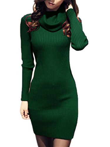 v28 Sweater Dress for Women Ribbed Knit Fitted midi Sexy Fall Winter Bodycon Cowl Neck Dresses (S,Dark Green)