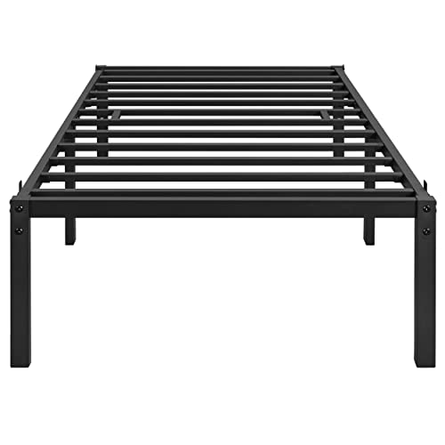 Yaheetech Sängram 36 cm H metallsäng med ribbotten, sängram av metall, modern dubbelsäng, enkelsäng, lätt montering, svart, 90 x 200 cm