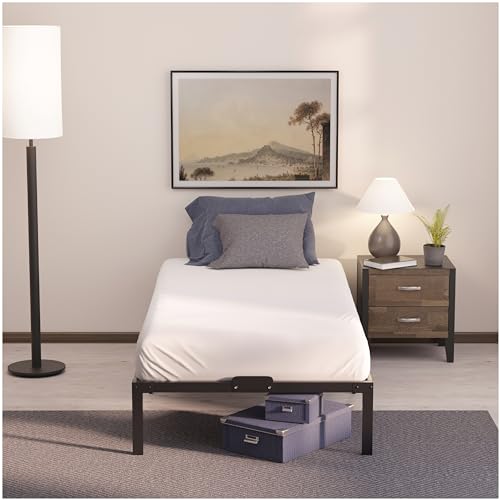 Yaheetech Sängram 90 x 200 cm, metallsäng, sängram av metall, modern, ungdomssäng, med ribbotten, dubbelsäng, enkelsäng, svart, 41 cm H