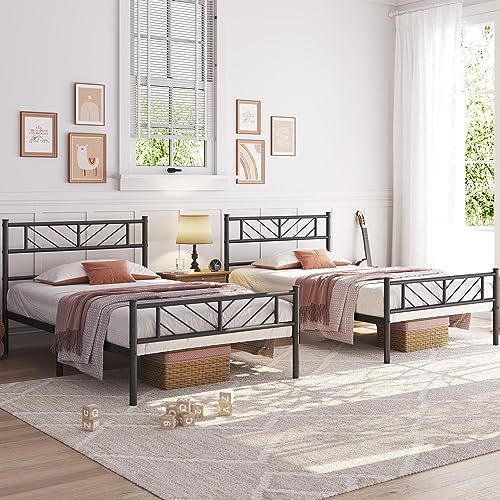 Yaheetech Uppsättning med 2 90 x 200 cm metallsäng, minimalistisk sängram med sänggavel gästsäng med ribbotten för sovrum, svart