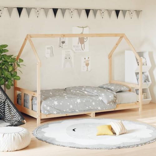 Rantry Barnsäng, träsäng, enkelsäng, hussäng, ungdomssäng, barnsäng med ribbotten, sängram, enkelsängram för barnrum, 90 x 200 cm, massivt trä furu