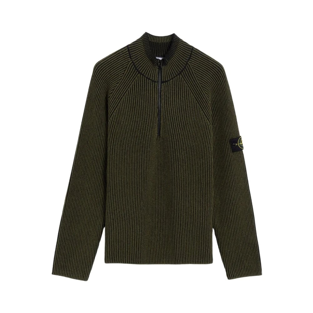 Stone Island, Stickade Tröjor , Herr, L, Bomull, Ribbstickad tröja med hög krage
