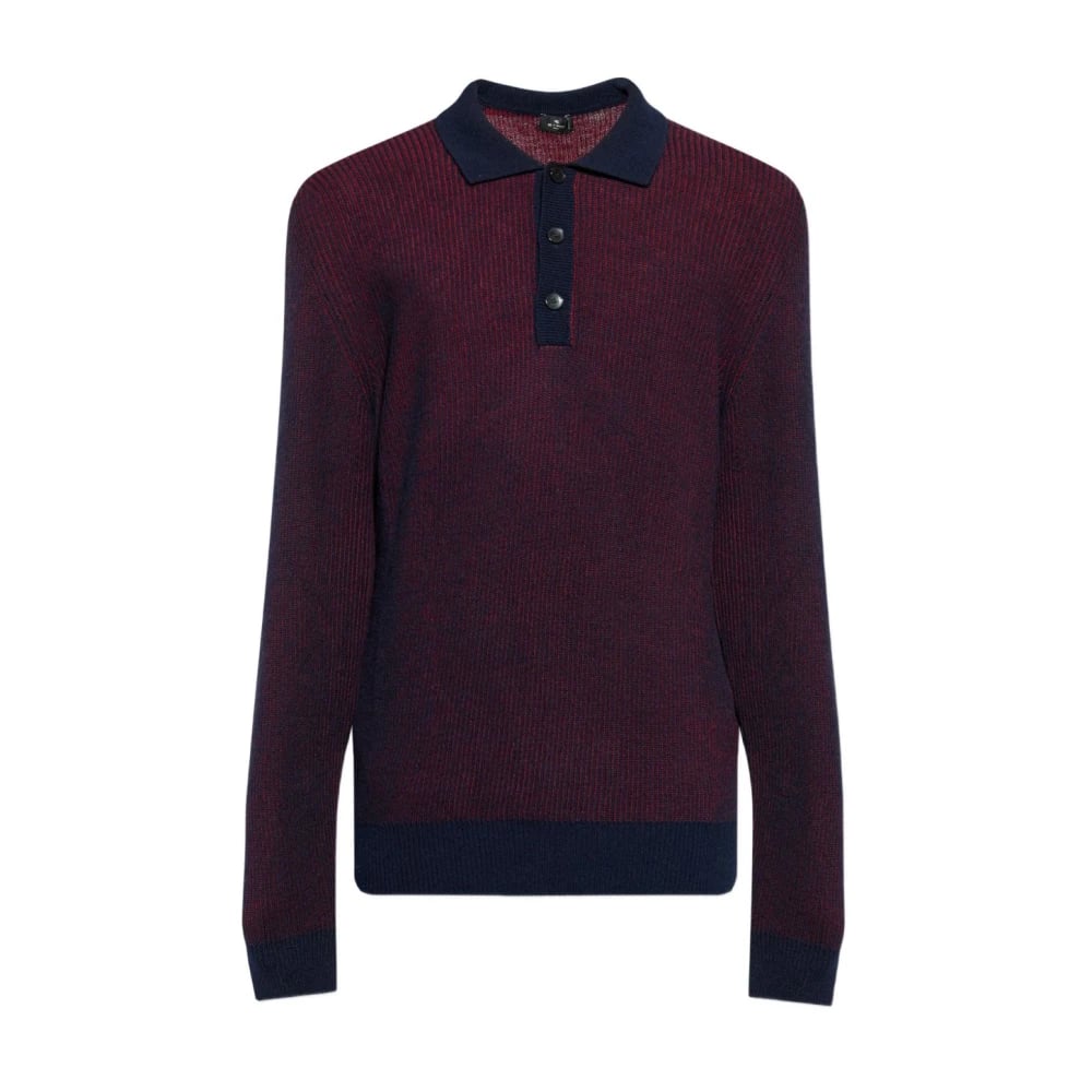 Etro, Stickade Tröjor , Herr, S, Ribbstickad polotröja i ull