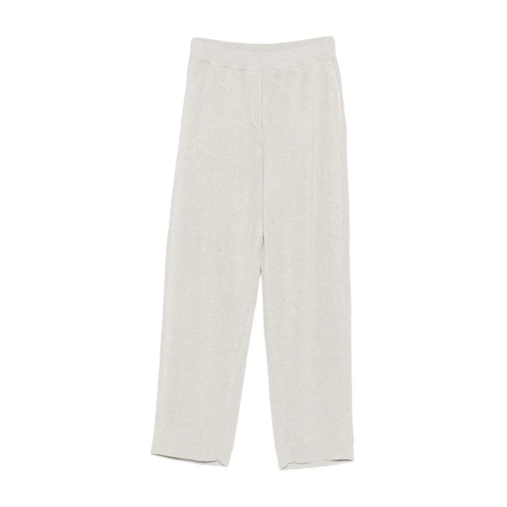 Brunello Cucinelli, Byxor , Dam, S, Grå Ribbstickad Rak Ben Byxor
