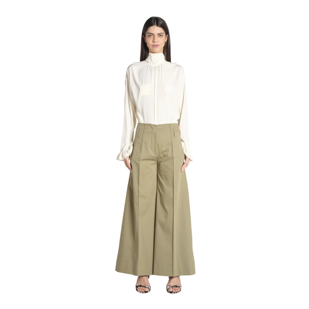Andrea Adamo, Byxor , Dam, M, Polyester, Ribbstickade utsvängda byxor med cut-out detaljer