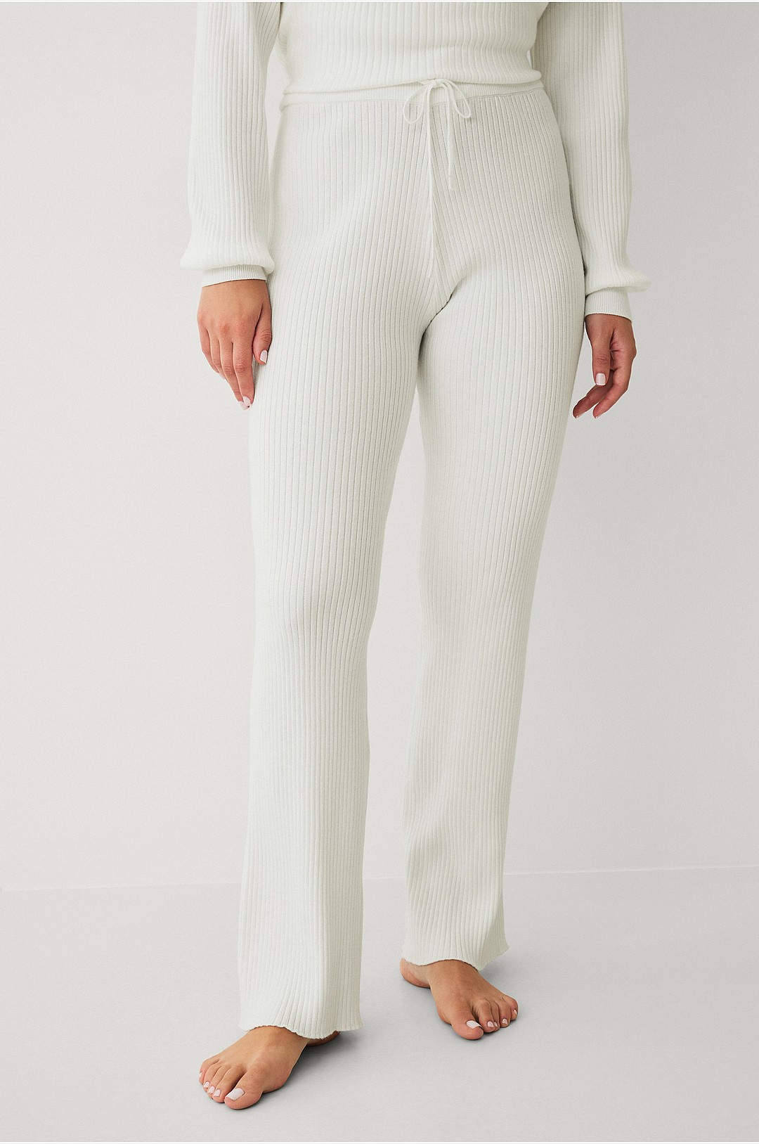 Ellos STUDIO - Mjuka ribbstickade byxor - Vit