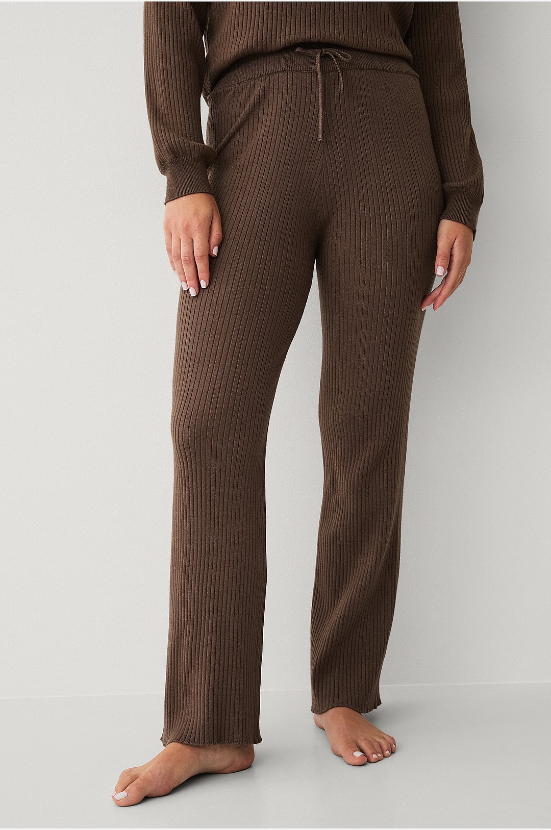 Ellos STUDIO - Mjuka ribbstickade byxor - Brun