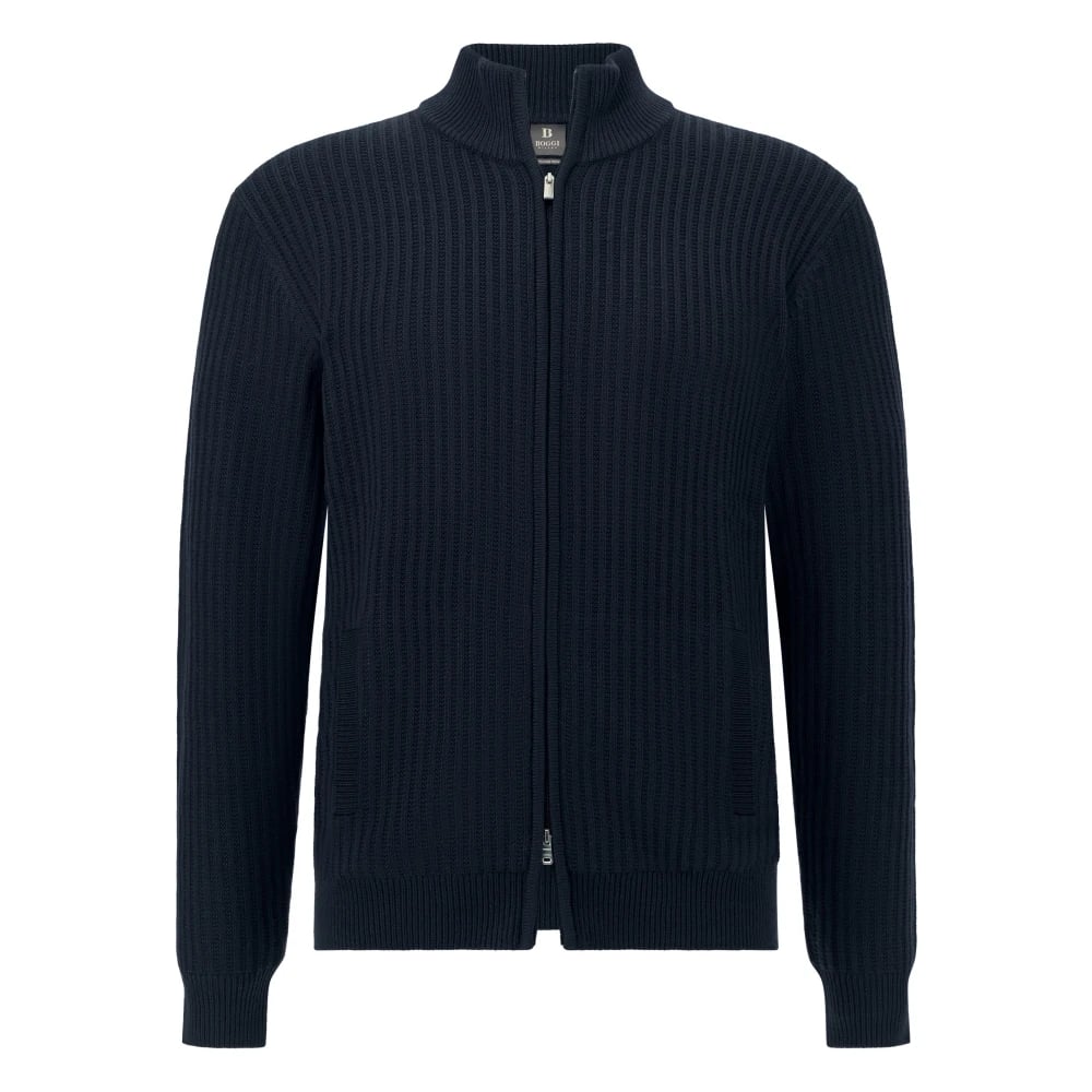 Boggi Milano, Stickade Tröjor , Herr, M, Merinoull Tröja med Full Dragkedja och Ribbstickning
