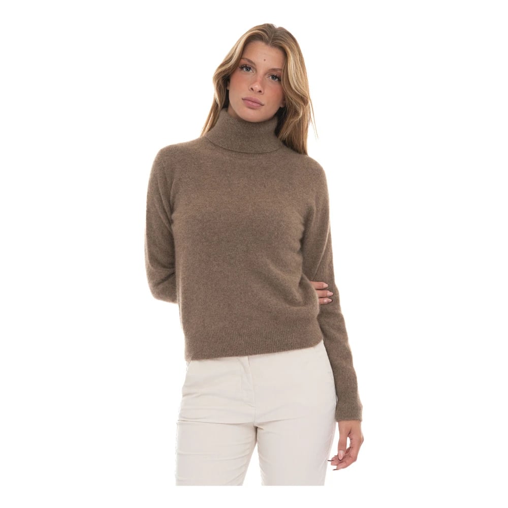 Vanisé, Stickade Tröjor , Dam, M, Raccoon Turtleneck Pullover med Ribbstickning