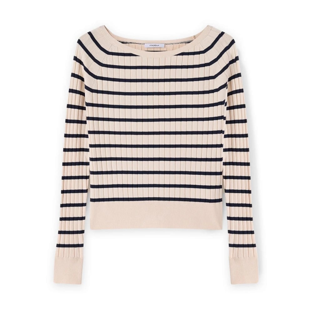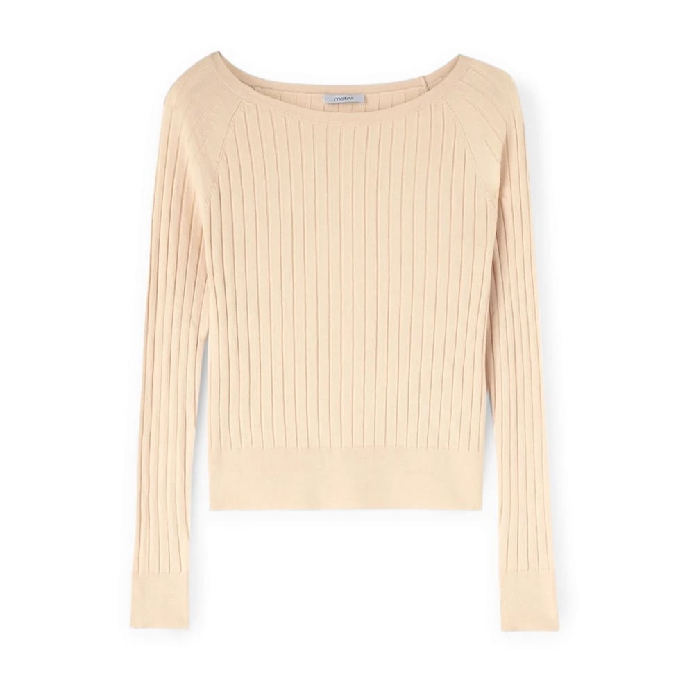 Motivi, Stickade Tröjor , Dam, M, Nylon, Båtringad Tröja i Platt Ribbstickning