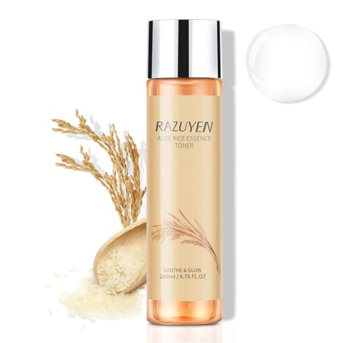 RAZUYEN Aloe Rice Essence Toner med Aloe Vera och Niacinamid, Återfuktande, Lugnande och Upplysande Ansiktstoner för Alla Hudtyper, 200 ml