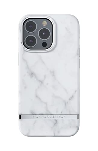 RICHMOND & FINCH Telefonfodral designat för iPhone 13 Pro fodral, 6,1 tum, dubbelt block fodral, testad för att falla, stöttåliga upphöjda kanter, skyddsöverdrag, vit marmor
