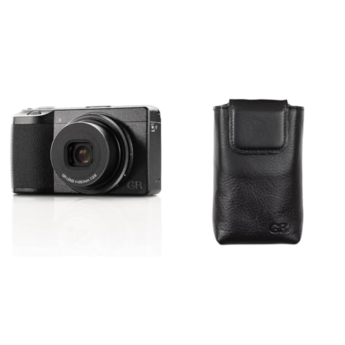 Ricoh GRIIIx digitalkamera [Brännvidd 40 mm] [Utrustad med 24,2 m APS-C-storlek stor CMOS-sensor] Svart & Ricoh Mjukt fodral i äkta läder GC-12 [Kompatibla modeller: GR III, GR IIIx]