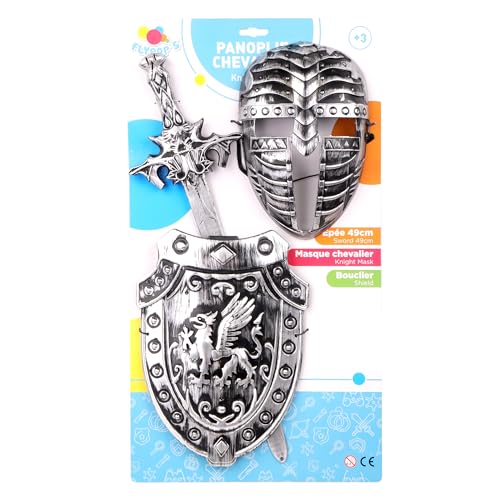 FLYPOP'S - Svärd, mask och riddarsele – utklädningstillbehör – 185813 – grå – plast – riddare – barnleksaker – karneval – kostym – 49 cm – från 3 år