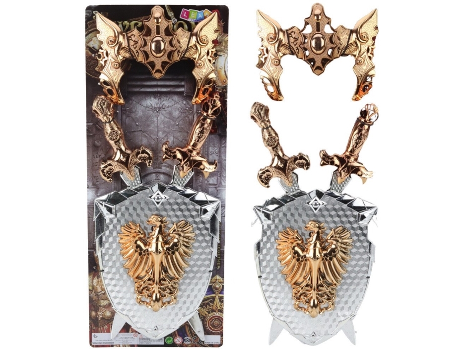 Riddarset Sköld Två Svärd Mask Silver Guld Örn