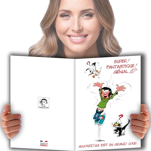 Gaston Lagaffe glmx-2020 stort kort hjärtlig lyckönskan stor A4 + kuvert illustrerad stor händelse bra meddelande Bravo champagne Maxi Riesen