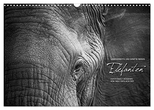 Emotionale Momente: Elefanten in black & white (Wandkalender 2026 DIN A3 quer), CALVENDO Monatskalender: Liebenswerte und sanfte Riesen