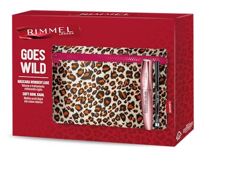 Rimmel London, presentförpackning för kvinnor, rimmel goes vilt, leopardmönster med mascara Wonder'Luxe + ögonpenna mjuk kål kajal jet svart