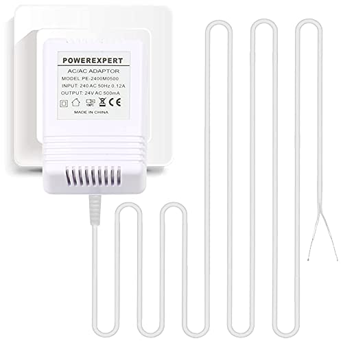 Dörrklocka transformator, 24 V/500 mA dörrklocka strömförsörjning transformator kabel kompatibel med Ring Video Doorbell, 8 m (317 tum) kabel (vit)