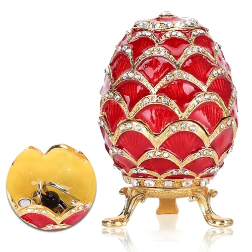 HERCHR Faberge ägg, glaserad smyckeskrin, metall smyckeskrin, Faberge ägg, handmålad emaljerad låda för halsband, armband, ring, kontorsdekoration