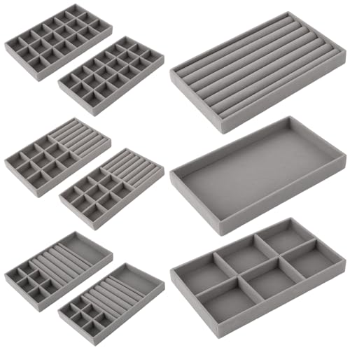 Yicaam 6 stycken smyckesbrickor i sammet, stapelbar lådinsats, smyckesförvaring, låda, sammet, smycken, arrangör för ring, örhänge, armband, halsband