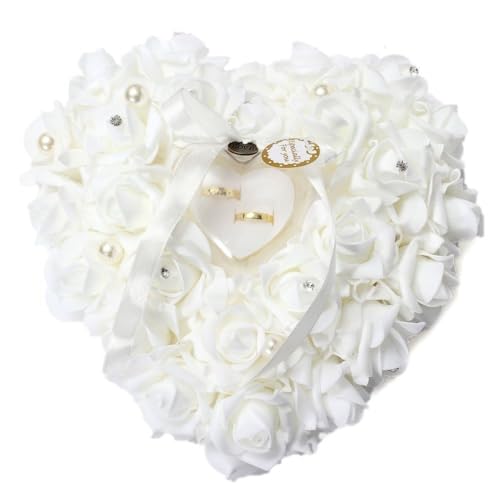 Amor present vigselring kudde, vit ringkudde spets kristall ros bröllop hjärta ring låda ringhållare
