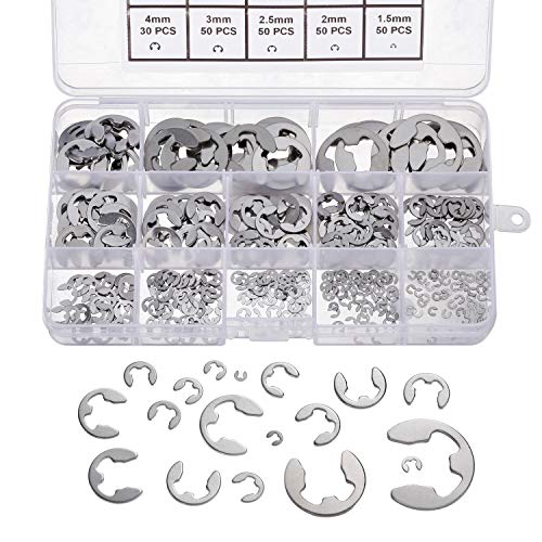 400 stycken E-clips i rostfritt stål E-ring-sortiment, KWOKWEI säkringsring snap 1,5/2/2,5/3/4/5/6/7/8/9/10/12/15 mm, säkringsskivor-sortiment med låda för wellspår maskin bil- användning