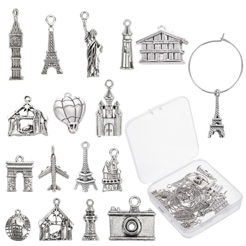 SUNNYCLUE 1 låda 16 stilar turist tema vinglas identifierare, berlocker, dryckesmarkörer, etiketter i tibetansk stil, legering, ring i rostfritt stål, legering och rostfritt stål, Legering och