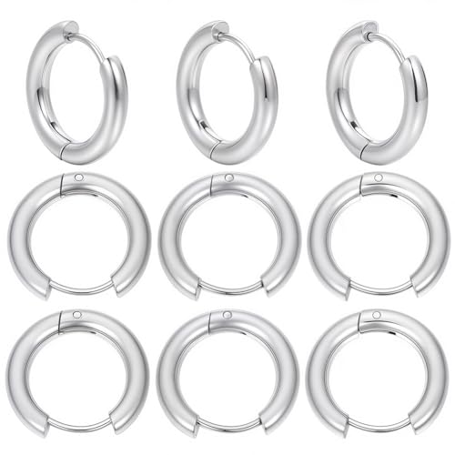 SUNNYCLUE 1 låda 24 st 12 par Huggie Hoops Spak Örhängen Rostfritt Stål Ring Örhängen Fynd för 14 mm Rund Hävstång Örontrådar med Palan