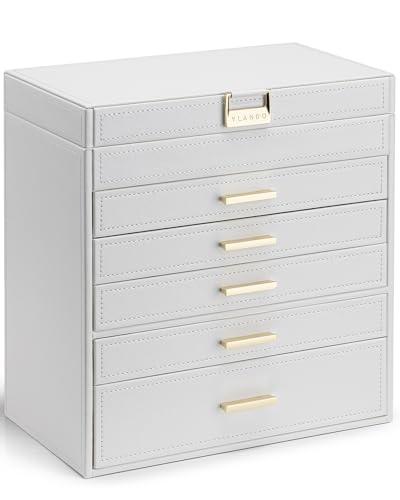 Vlando 6 lager stort smyckeskrin – smyckeshållare, organisatör, smyckeskrin, organiserare för låda, halsband, ring armband och klocka, julklapp till älskade – vit