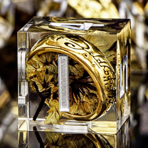 ORIFANTOU - Röd harts vass vass kant magisk gyllene ring DND tärningsset med låda, för användning med RPG D & D Lord D & D polyhedral tärningsset