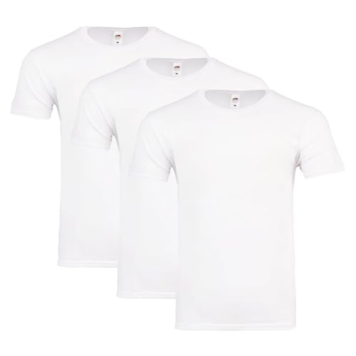Fruit of the Loom t-shirt för män, 100 % bomull – Ikonisk T med spunnen ring bomull – ljus, luftig och mjuk – högsta, Vit (3 stycken), S