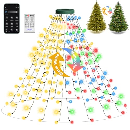 Anmossi Smarta Julgransbelysning med Ring, 2m 400 LEDs Julgransbelysning med Fjärrkontroll,16 Ljusslingor,APP-styrd Musiksynkroniserad,LED Ljus för 1.2-3m Julgransdekoration,(Varmvit och Flerfärgad)