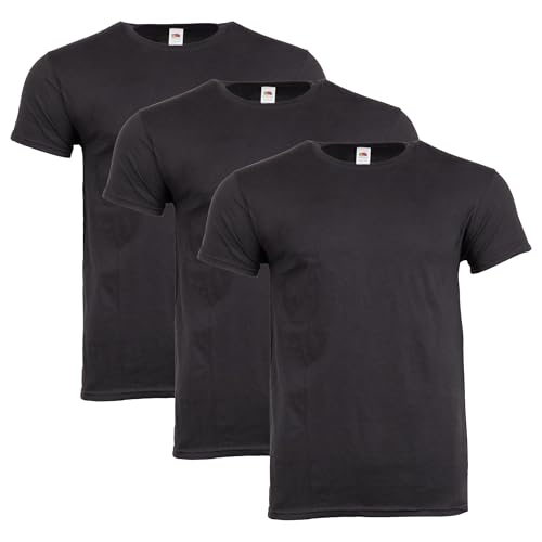 Fruit of the Loom t-shirt för män, 100 % bomull – Ikonisk T med spunnen ring bomull – ljus, luftig och mjuk – högsta, Svart (3 stycken), M