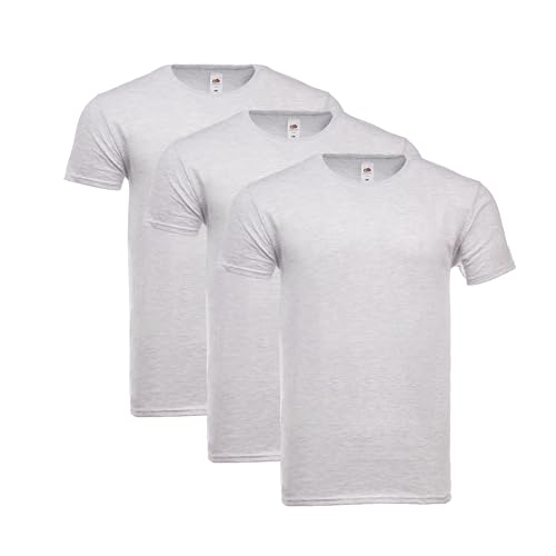 Fruit of the Loom t-shirt för män, 100 % bomull – Ikonisk T med spunnen ring bomull – ljus, luftig och mjuk – högsta, Grå (3 stycken), S