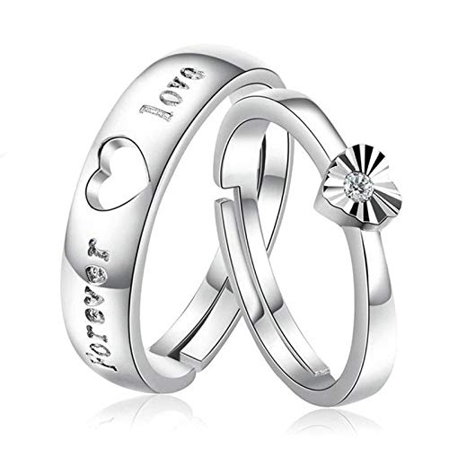 Gualiy Par löftesringar för honom och henne set, justerbar ring i sterling silver, matchande CZ hjärta graverad för evigt älskare storlek justerbara ringar med kubisk zirkonia, silver