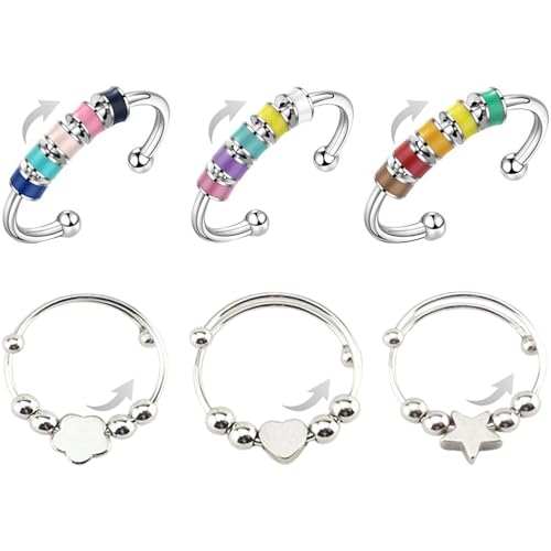 Ångestlindrande Fidget anti-stressring – pärlringar med roterande funktion för kvinnor, mood ring lugnande ring för flickor, justerbara stjärnor, moln hjärta relief ringar, gåva för kvinnor och män