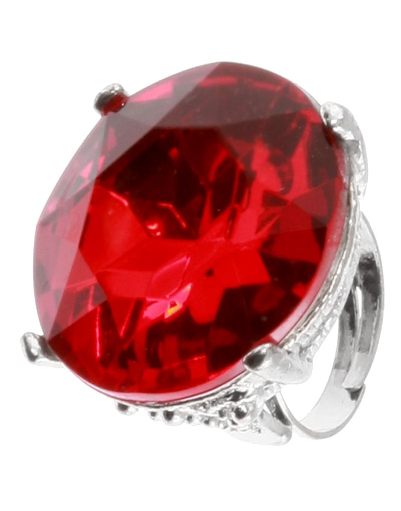 Silverfärgad Ring med Röd Rund Sten - Justerbar