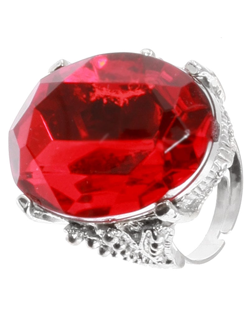 Silverfärgad Ring med Röd Oval Sten - Justerbar