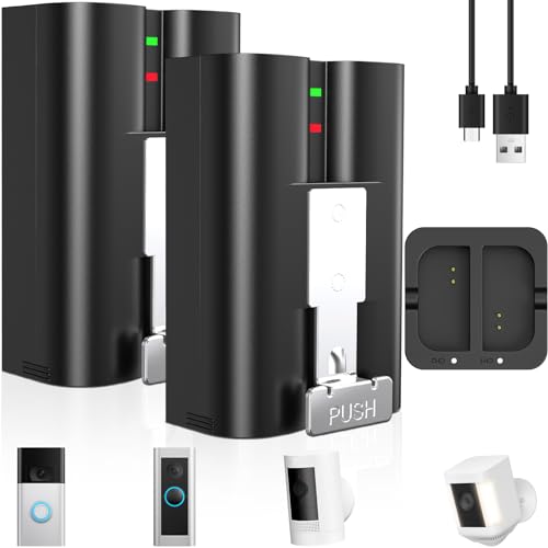 Batteri 2-pack och laddare för Ring Video Doorbell 2 3 Plus X Video 4 8AB1S7-0EN0 8VR1S7 Peephole Cam Solar Floodlight Spotlight Cam Solar Stick Up 3,7 V 6 400 mAh