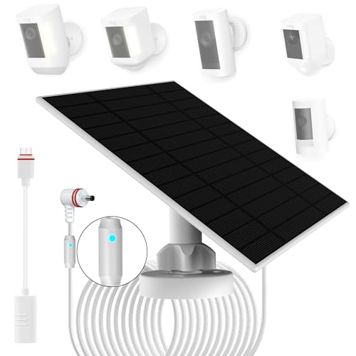 Solpanelladdare för Ring Spotlight Cam & Ring Stick Up Cam, IP65 Vattentät Solpanel med 5V 10W Laddning, 9,8ft Kabel (CSP4W-DC-W)