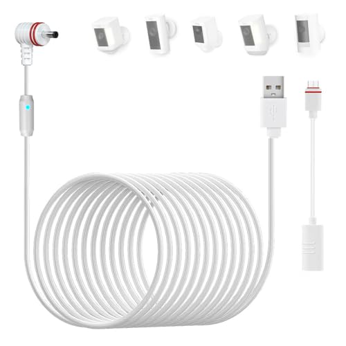 24,9 ft/7,6 m USB-laddningskabel med typ C-adapterkabel och LED-varningslampa, kompatibel med Ring-kamera (Spotlight Cam, Stick Up Cam/Pro, Spotlight Cam Plus, Spotlight Cam Pro), väderbeständig